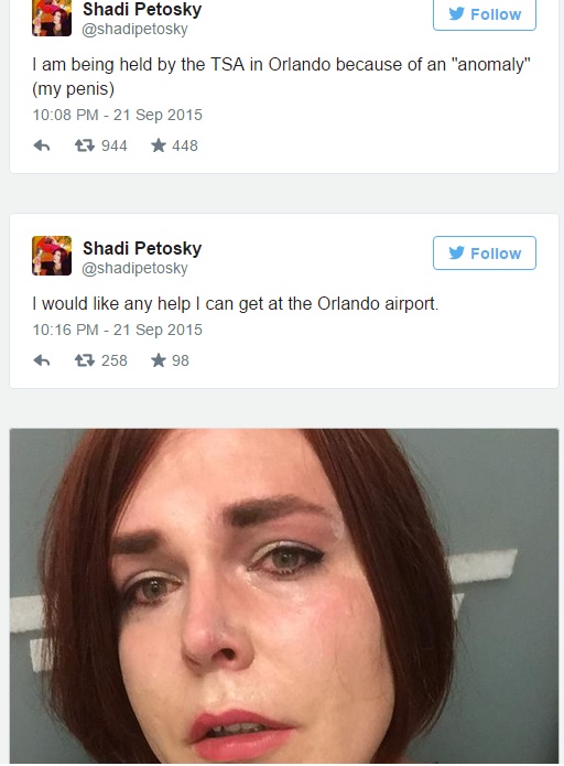 It should have said stop patting down my rather large clitoris.