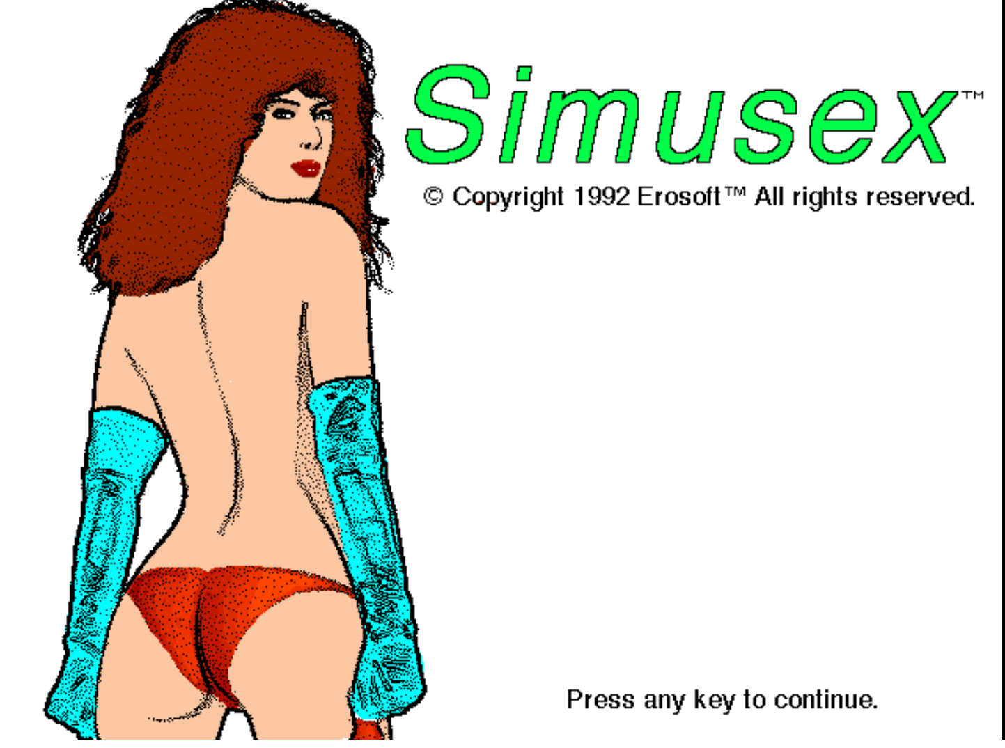 This, is Sim-U-Sex. Published in 1992 by a European software company for DOS platforms. It may be on others, but IDK. This is the only game they ever published, despite promising a sequel to everyone who registered their copy.