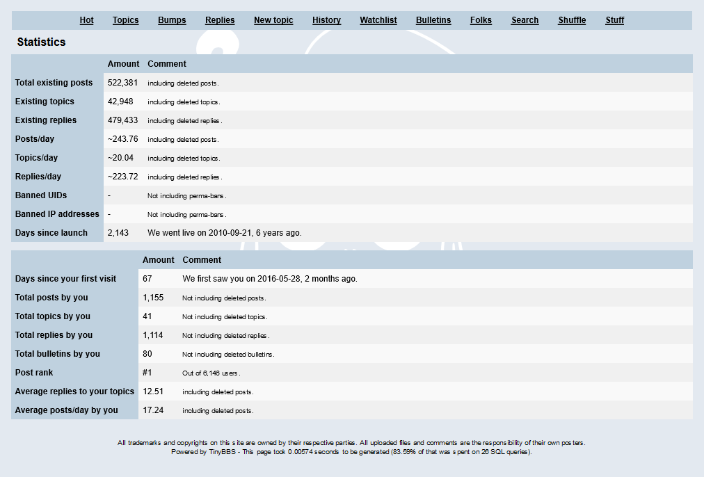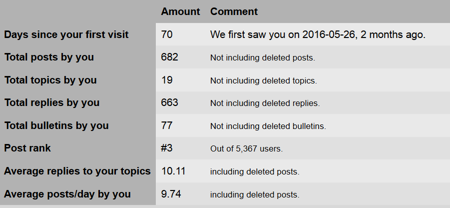 I'm just curious what the gap is between the #2 and #1 posters. lol.