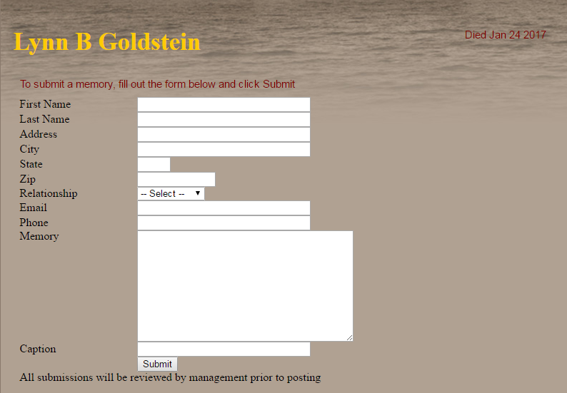 That's not an obit, that's a memorial page. Anyone can set one of those up.