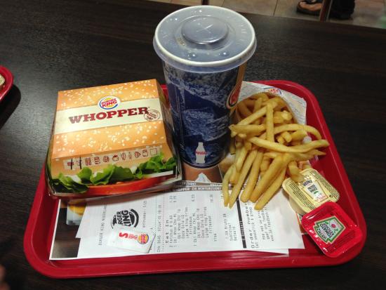 I'd like a double Whopper with cheese catsup mustard and lettuce...a large french fry and a large Coke..