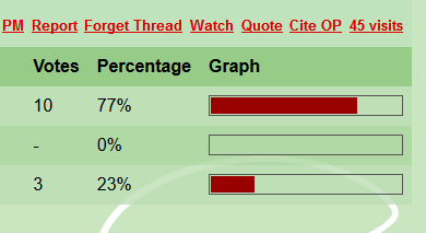 I will respect the results of the poll, unlike murrin. Poll end when I say it do.