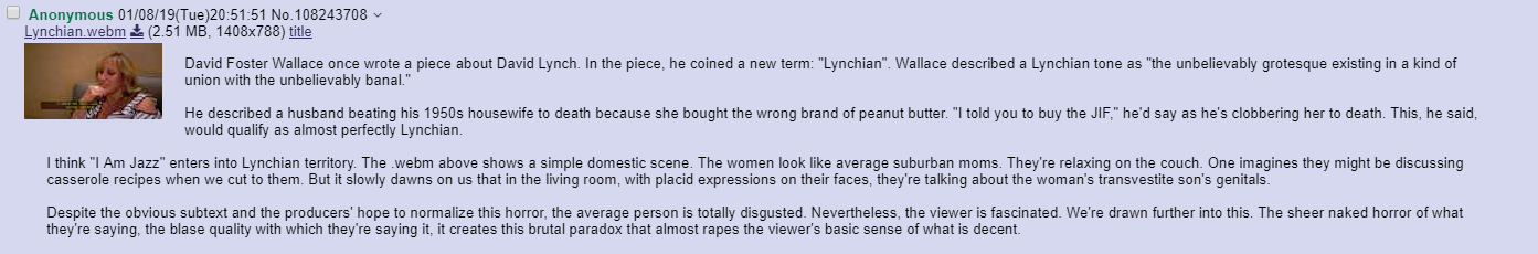 Topic: "I Am Jazz" falls into Lynchian territory.