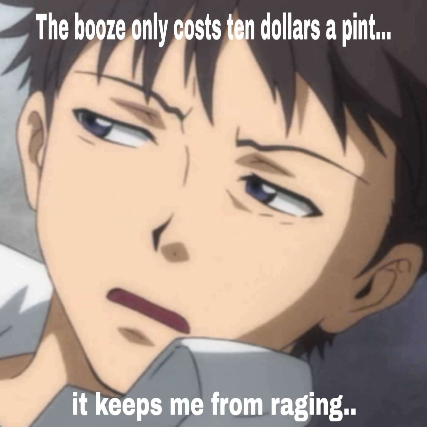 He self medicates with Everclear. Pickling his liver and mucking up his arteries eight shots at a time.