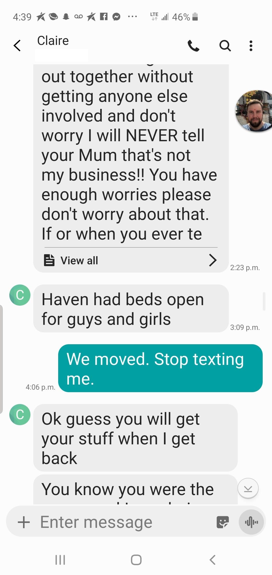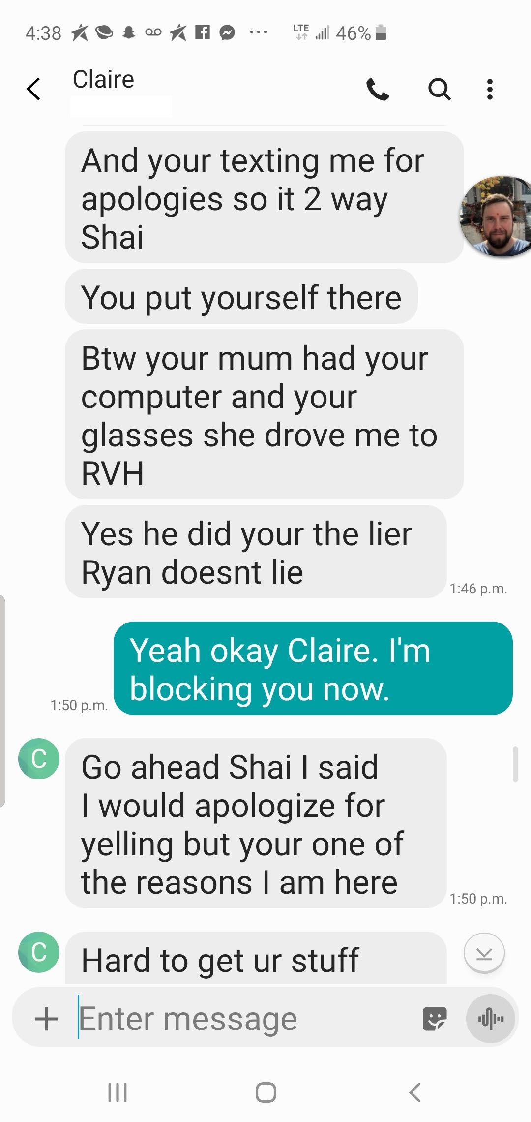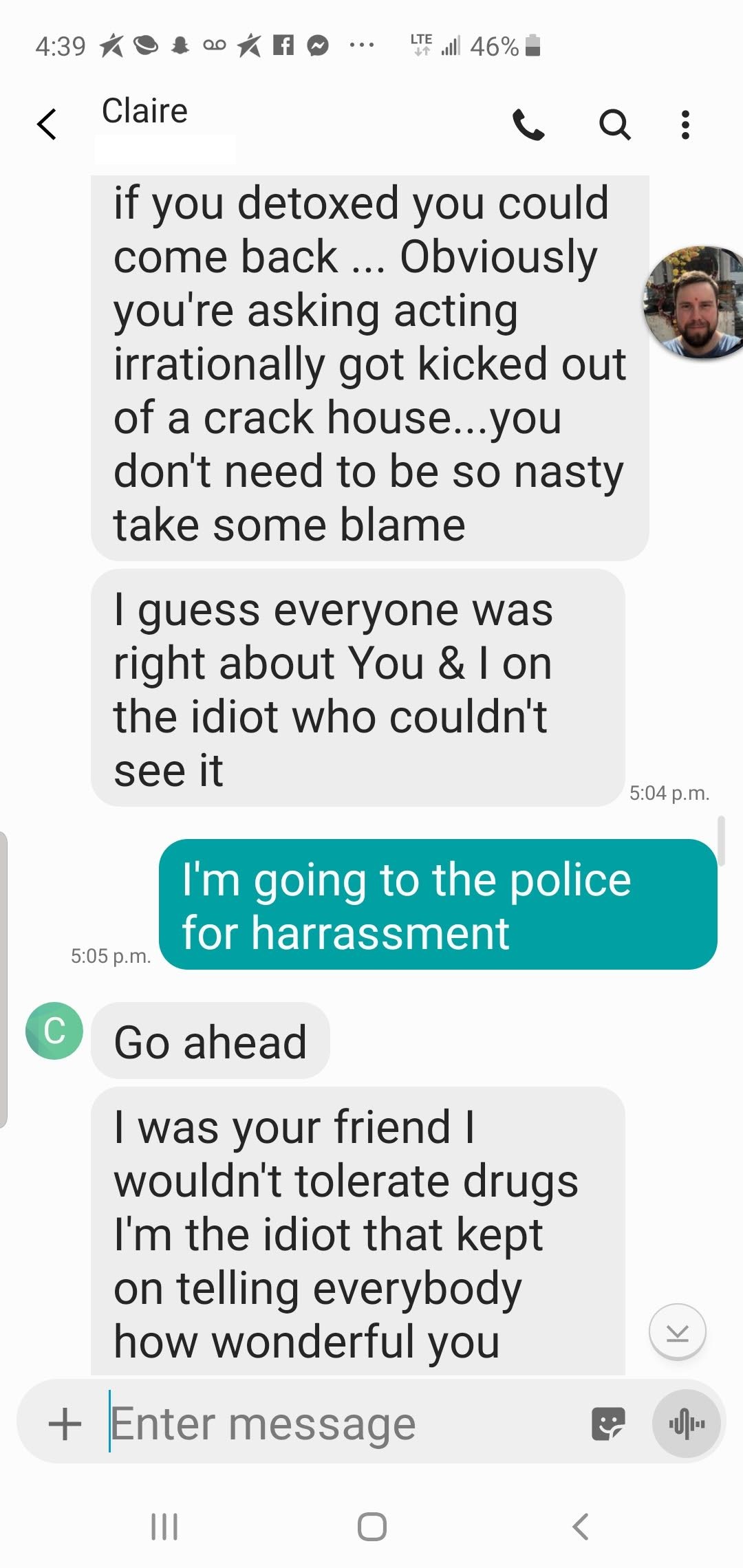 Those messages sound like she is concerned for you Shaiby...you claimed Claire was not giving you your stuff back...but it says right there your mother picked them up...kicked a 5 yr addiction? You just started and you were high in court...you could not keep your eyes open LMFAO