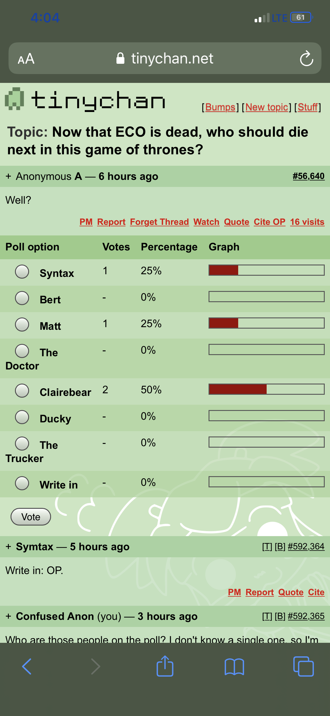 Edit: thought you tried to say I had voted. Pic was proof that I didn't. Oh, well... No one is perfect. Also, sure. I love voting but didn't.