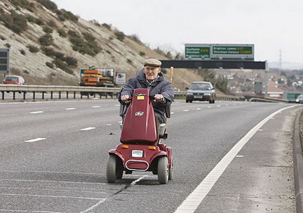 Even you must admit that old guy is far more alive than your blotted dead dad. Nor do they allow that kind of driving in Calif.