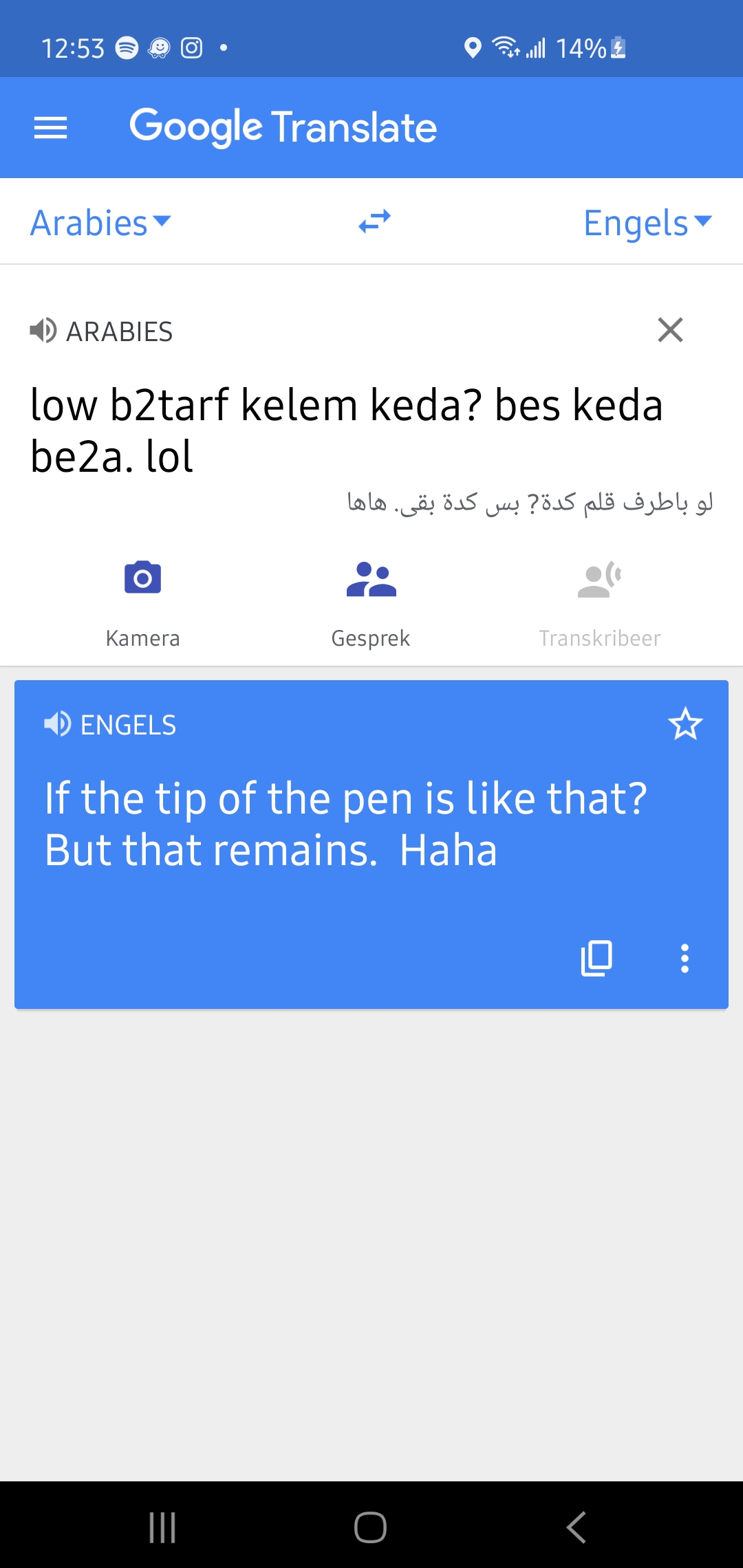 u jus copied n pasted the words from the translator. lol.... the translator doesnt do dialect. i speak egyptian.