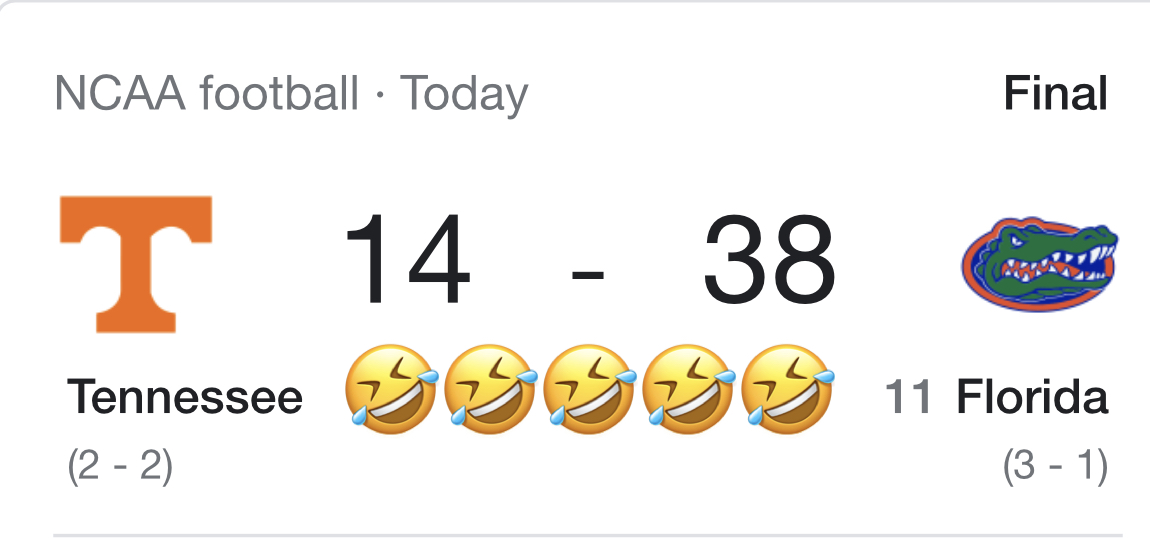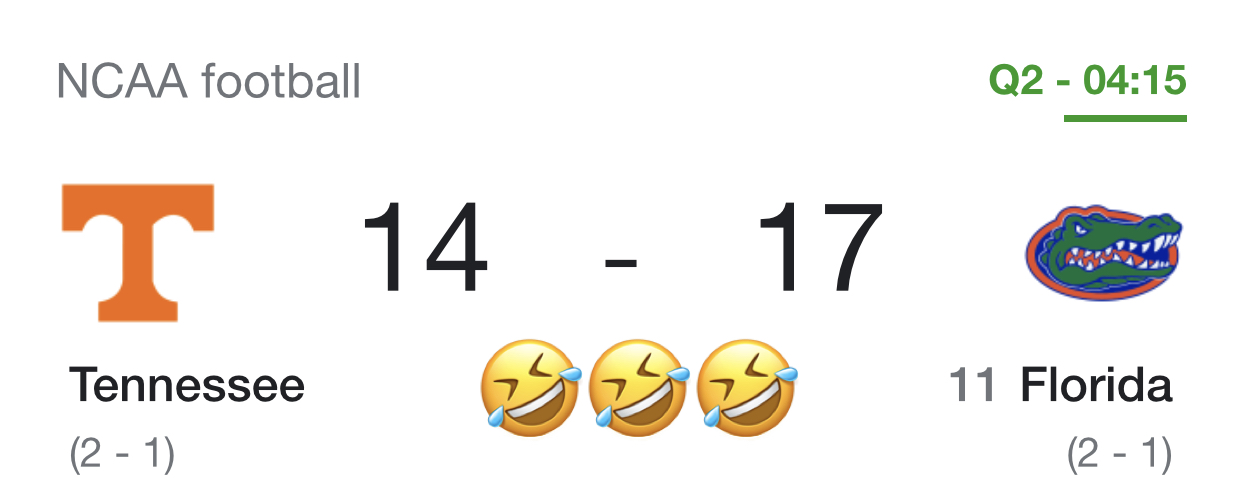 14-10 Tn is stomping the Gaytors.