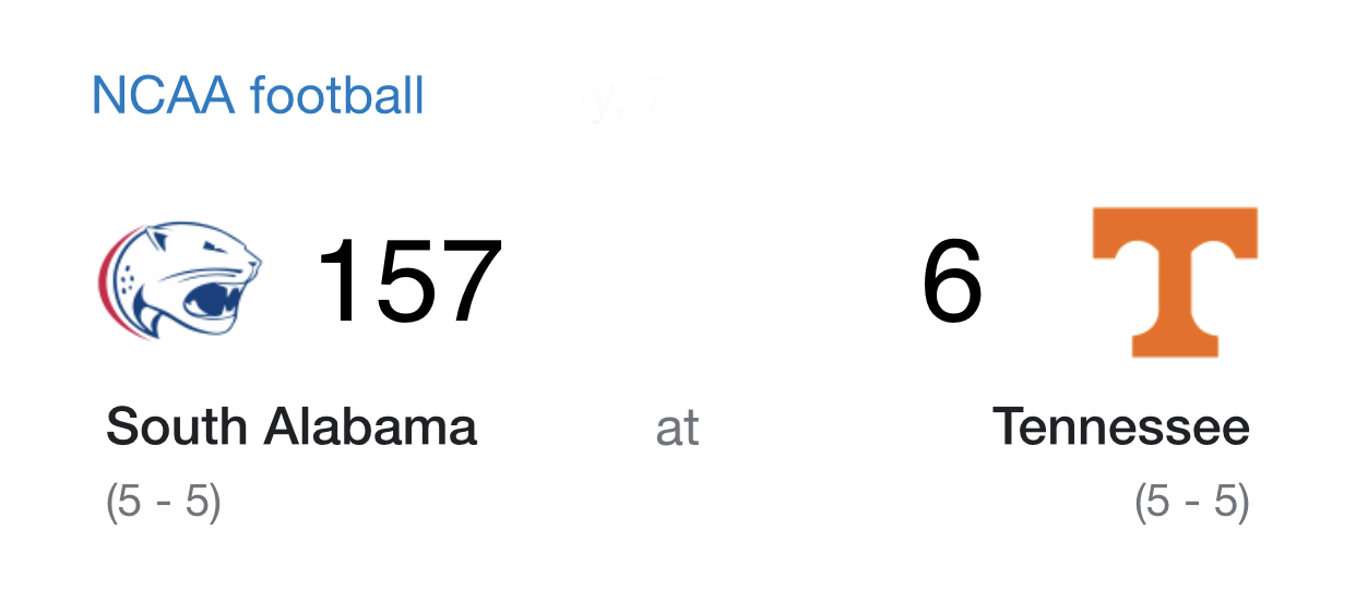 @622,505 (E)Game's over, bert. Tennessee can't even beat South Alabama😂😂😂
