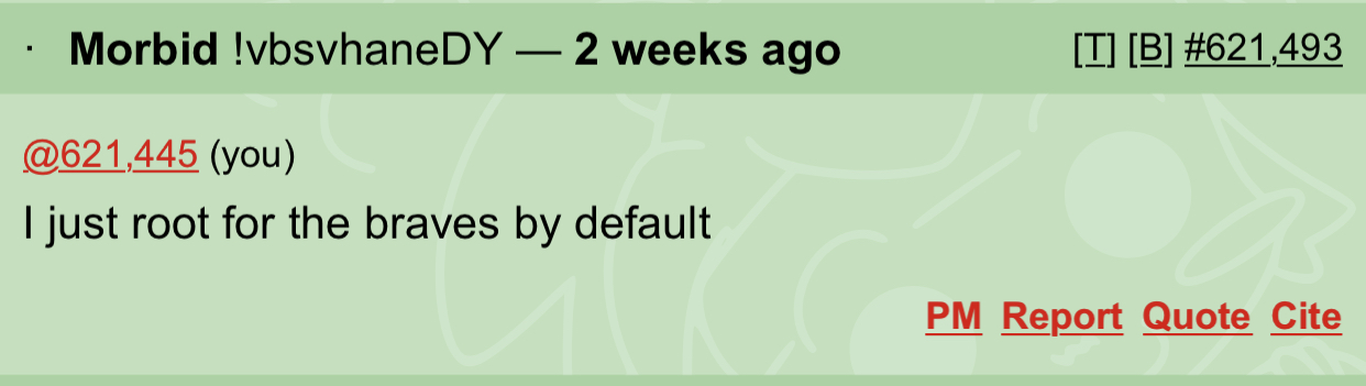 Now the wannabe Braves fan wants to butt in to try and seem cool.