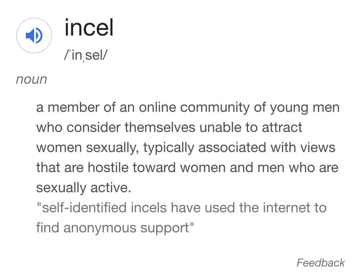Go look up what an incel is. I'll wait.