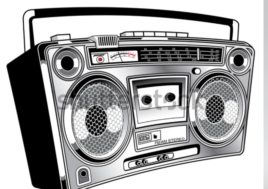 Can you draw a picture of a ghetto blaster like this but have an effect showing the movement caused by the music?