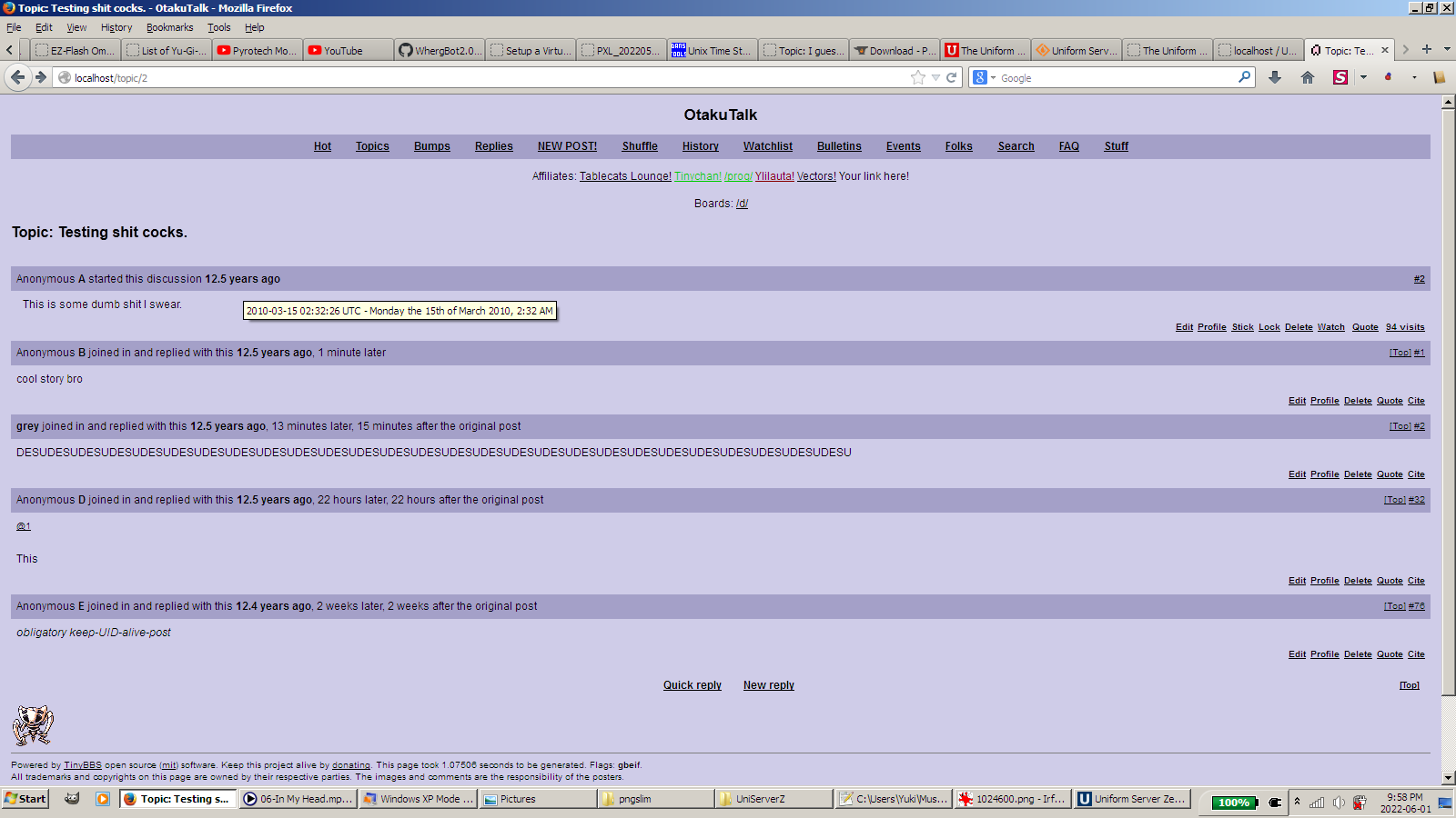 Otakutalk's database starts 6 months before TC's.