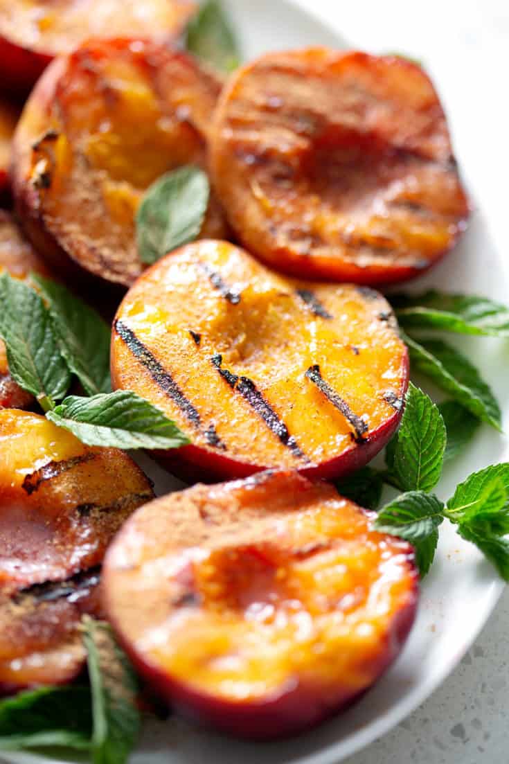 Grilled peaches are incredibly easy to make and can be eaten in so many ways. They can be served alongside grilled meat—we love pairing them with pork and chicken. They can be the star of a summery salad, like this Grilled Peach and Arugula Salad with Feta. And of course, they make an incredible dessert. Served with a scoop of vanilla ice cream, a drizzle of caramel sauce, or even on its own, a juicy, caramelized grilled peach is a thing of beauty.'''