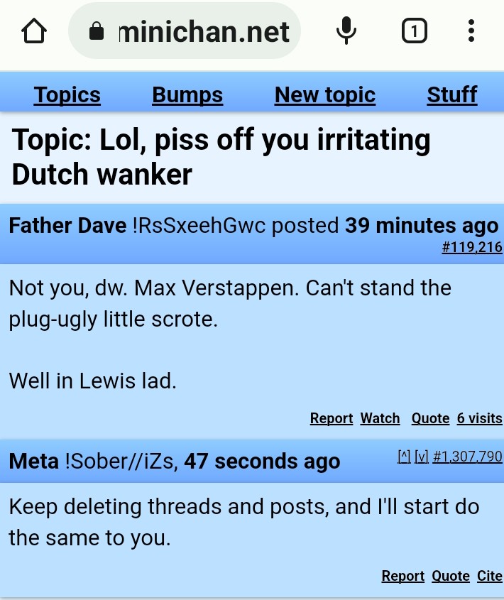 nah that would be me, i use multiple computers and macros so that whenever he would delete one thread i already had another ready to go, its how I got him to give up and just start locking threads, hes so fucking predictable and so easy to set off though there are other people who make posts/threads as well but they dont ever start joining in until I post a thread or something.