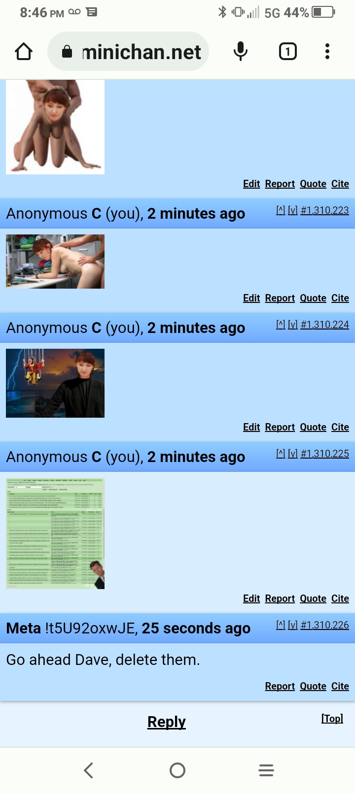 I check here first anymore, and will make a few posts. I made one last night at MC it had nothing to do with pedo dave and it got deleted. Just a waste of time trying to post there anymore. I think dave is deleting any post of people who has trolled him in the past. He's a cunt, let him fuck the place up..I don't care.