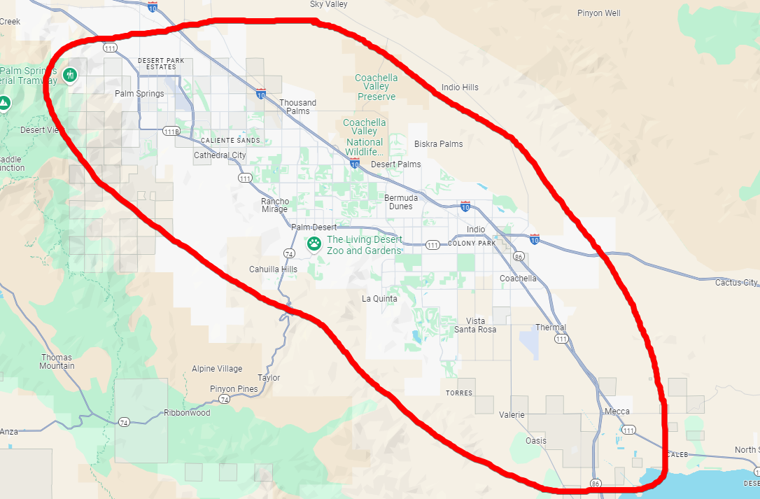 This is the Coachella Valley. Anywhere from Palm Springs all the way down to Mecca.