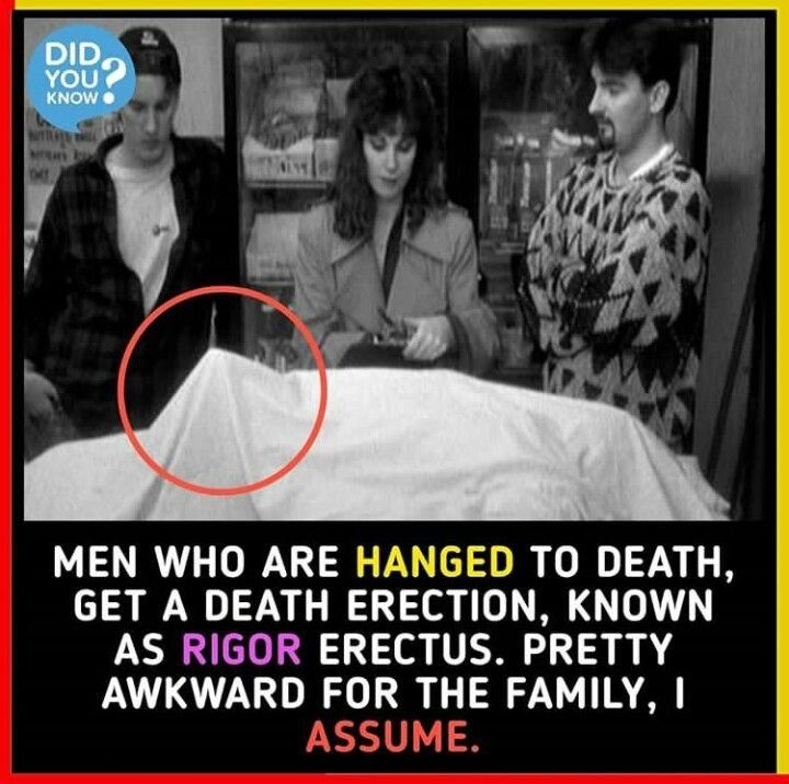 Years ago kook a gal and former poster of TC brought up this subject and I did NOT believe her. Alas a look up shows even you may become erect after death.