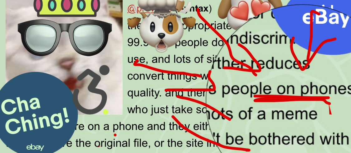 there are appropriate uses for each, but 99.9% of people don't know or care what to use, and lots of sites will indiscriminately convert things which further reduces quality. and then there's people on phones who just take screenshots of a meme because they're on a phone and they either can't be bothered with trying to save the original file, or the site intentionally obfuscates it in such a way as to prevent direct saving, which then results in wasted space. the modern internet is an absolute clusterfuck